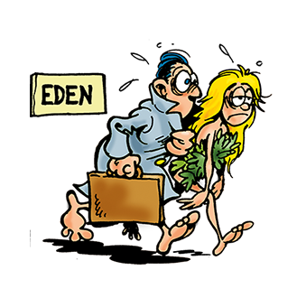 Adam & Eva och deras välskapta barn får naturligtvis finnas. Särskilt Eva! Torrbollen Adam är förstås en mistlig figur, men han gör ju viss nytta som barnpassare. Han har förstås en gravt skadlig inverkan på deras karaktär, men det är ju inget som inte kan åtgärdas med ett enkelt handgrepp.
