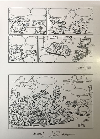 Tröskeln till 4-siffrigt antal strippar sedan starten 1988 klevs över 2015, och här är den. Tusch (och blåpenna) på 240g papper i A3-format.