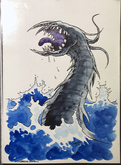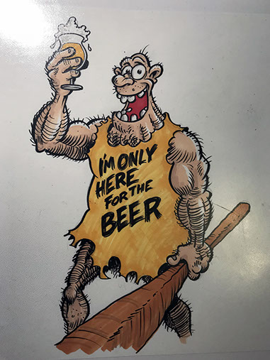 Illustration till öletikett Brygghuset FINN. Färgpenna/tusch A4 ritpapper monterat på 240 tuschpapper.